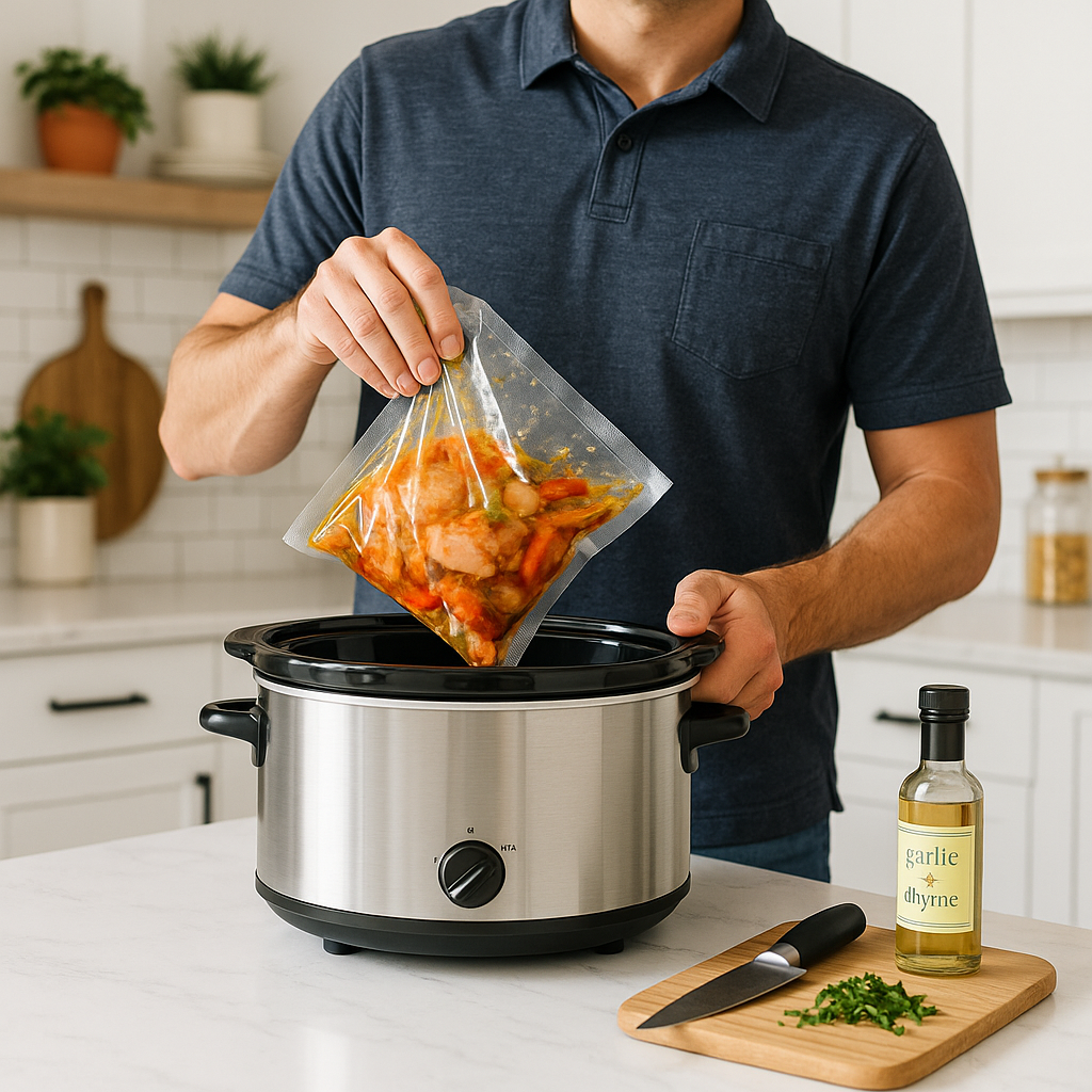 Thaw, then simply cook in your slow cooker or pressure cooker.