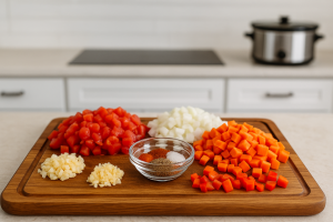 This hearty stew brings together tender chicken, chickpeas, sweet carrots, and tomatoes in a rich, spiced broth bursting with North African flavor. Fragrant harissa, garlic, paprika, and a touch of cinnamon create a warming depth, while chili flakes add just the right kick. It’s a one-pot comfort meal that’s as nourishing as it is bold—perfect for dipping with crusty bread or served over grains. 🌶️🍲✨